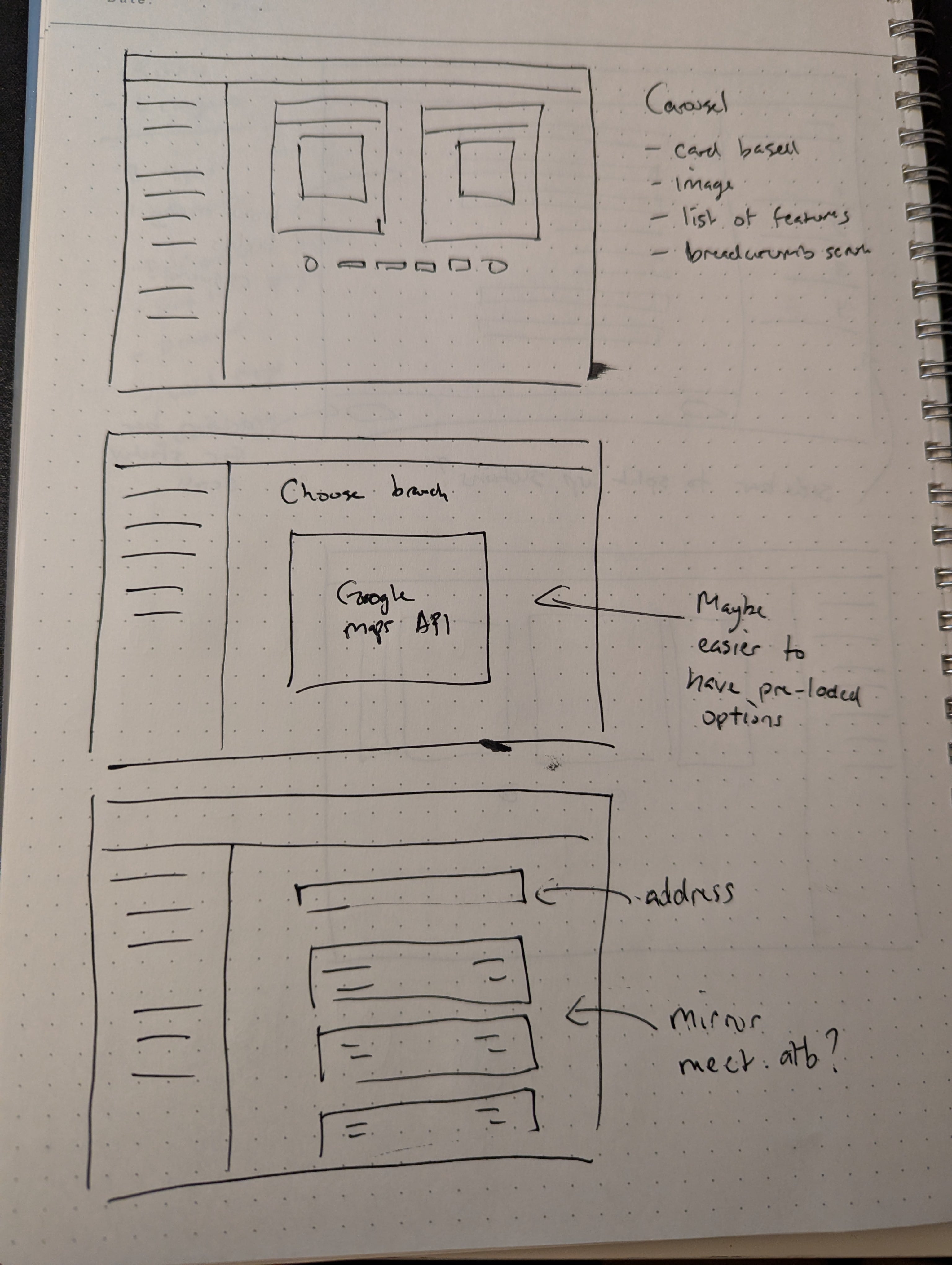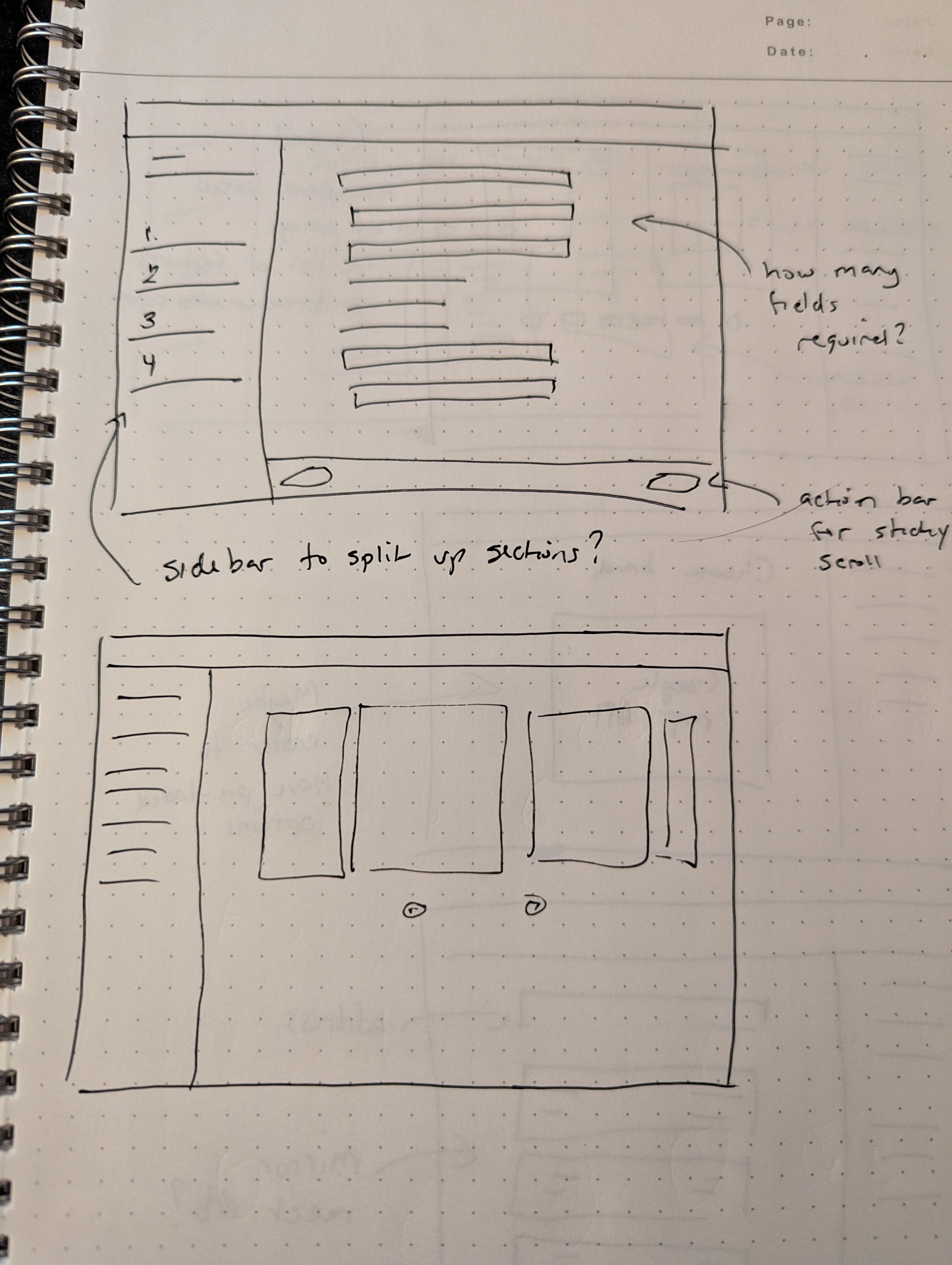 Next, I moved to sketching out rough concepts that would be used for the purpose of brainstorming ideas with the product manager and as illustrated examples to check for technical concerns with the lead developers on the project.
