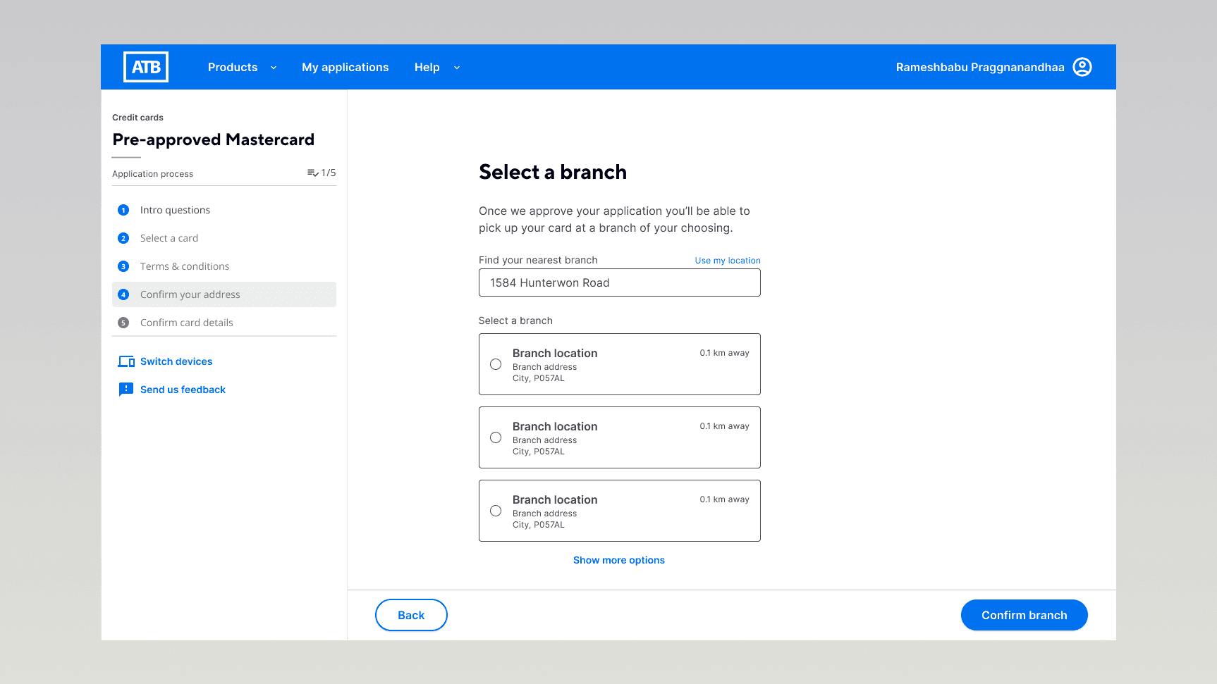 Fraud and user error concerns pushed us to require users to pick up their Mastercard in-branch if they recently changed their address. This gave us the opportunity to provide users with the option to tailor their pickup/delivery method based on what worked best for them.